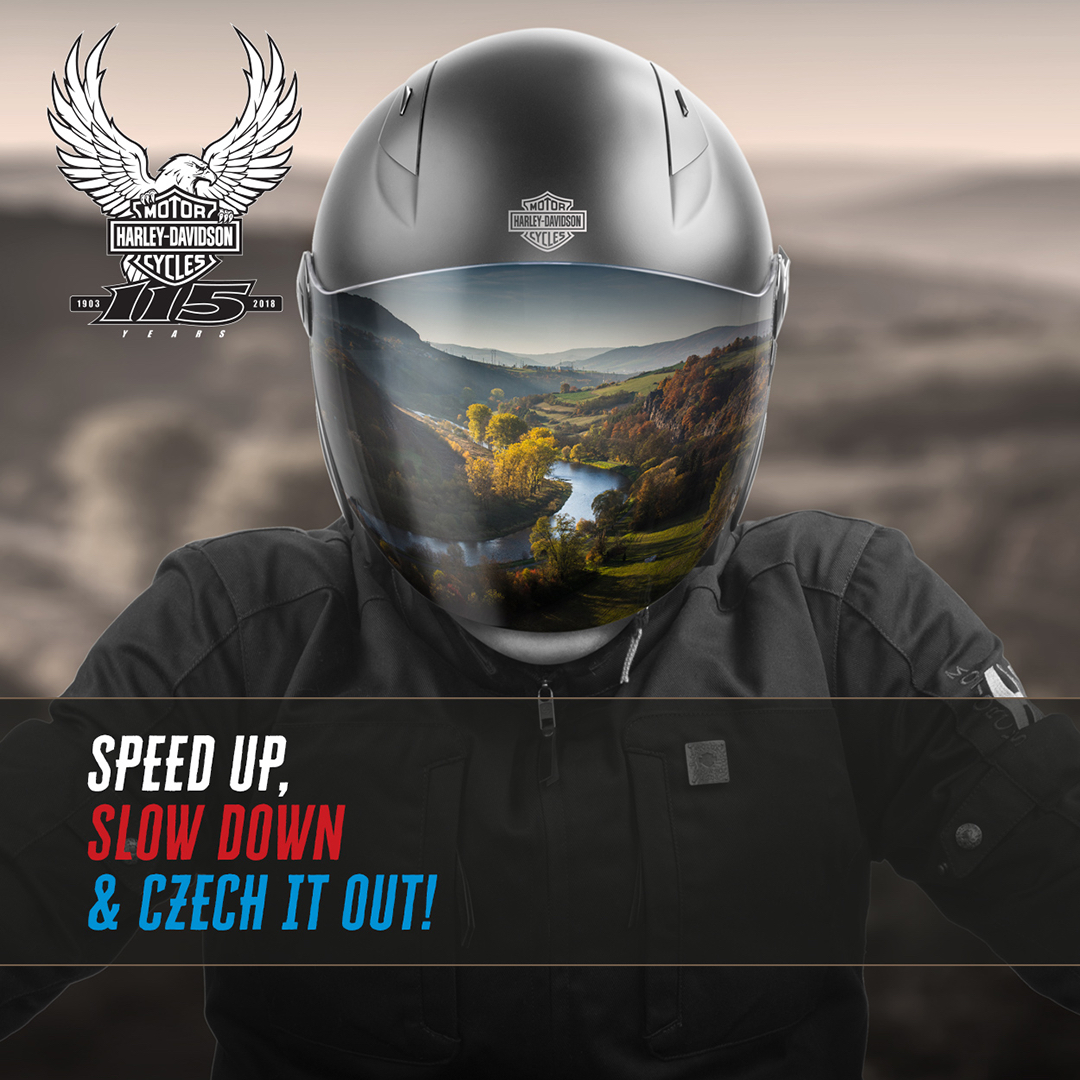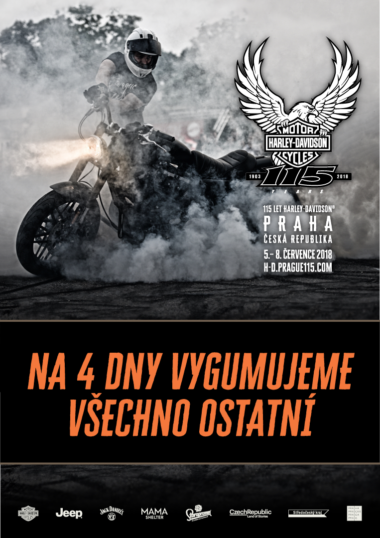Nejenom, že jich několik parkuje před našim barákem, my je oddaně na všech svých jízdách propagujeme. Z naší dílny vyšel klíčový vizuál a další grafické návrhy ke 115. výročí Harley–Davidson v Praze. Nadšeně jsme obrandovali, co se dalo, a s hrdostí jsme byli součástí produkčního týmu. Vyboxovali jsme si online kampaň na turnaj thajského boxu Muay Thai Gala a byli i součástí jeho produkčního týmu. Levou zadní vedli cross promo kampaň koncertu Rolling Stones a H–D 115. Žijeme jen jednou, a proto jsme si vyhradili vlastní jízdní pruh uprostřed dvojité plné čáry. Jsme totiž radši první v pekle než druhý v nebi. Nechcete novou motorku?